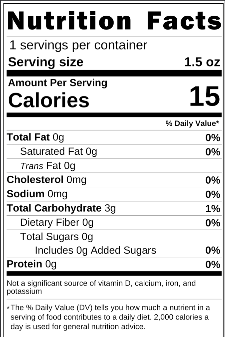 Our formula blends vegetable glycerin, beta-cyclodextrin, maltodextrin, and sunflower lecithin for maximum bioavailability and a naturally smooth taste. Lightly sweetened with erythritol and balanced with citric acid and a touch of salt, it delivers a clean, earthy flavor without bitterness or harshness.