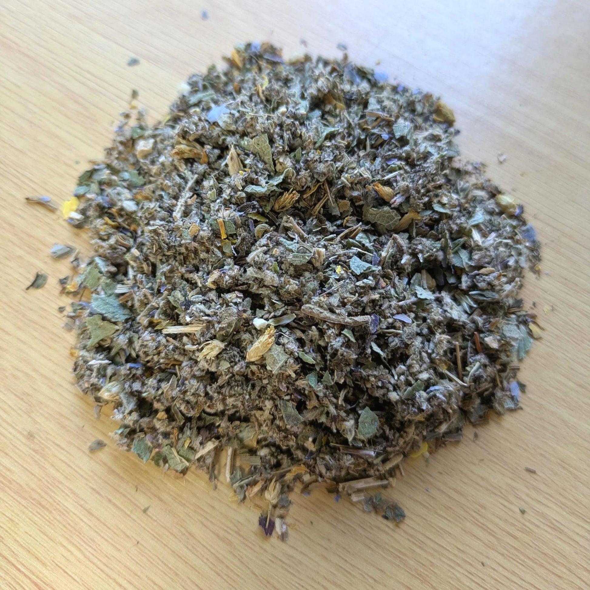 Each ingredient is carefully selected and finely pre-ground for easy use in teas, smoking blends, or ritual incense: